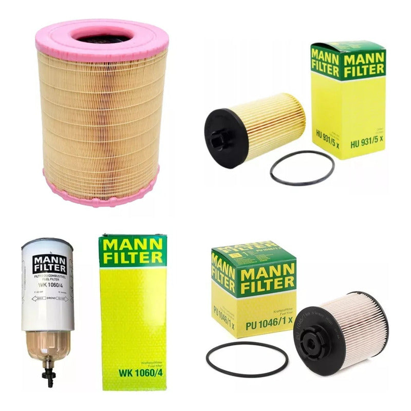 KIT FILTROS PARA MERCEDES BENZ ATEGO 1315 / 1418 / 1718 Incluye: - FILTRO DE AIRE ( C 28 1012 ) - FILTRO DE ACEITE ( HU 931/5 ) - FILTRO DE COMBUSTIBLE ( PU 1046/1 ) - TRAMPA DE AGUA ( WK 1060/4 ) .DISTRIBUIDOR OFICIAL MANN FILTER -GRUPO ROSINELLA